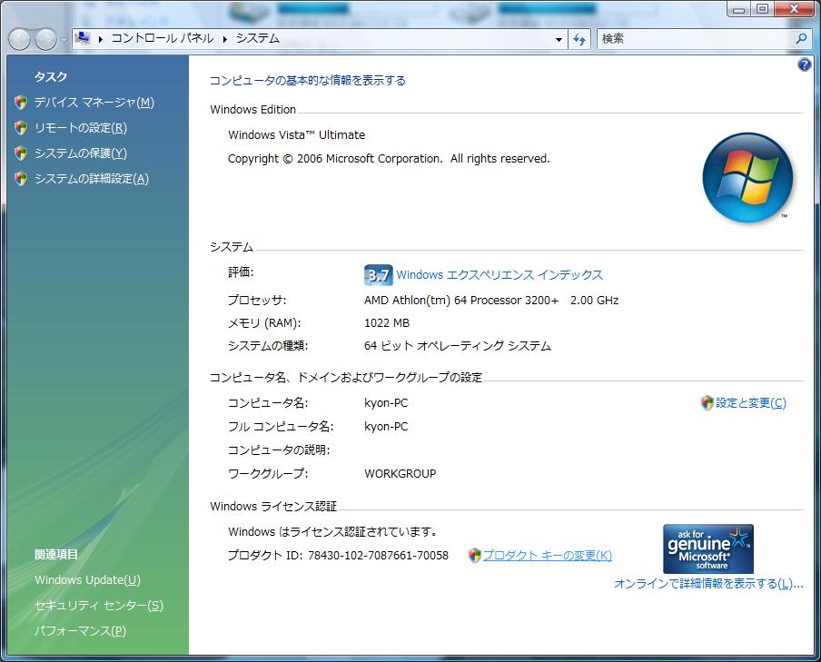 WindowsVistaをインストールしましたよぉ。